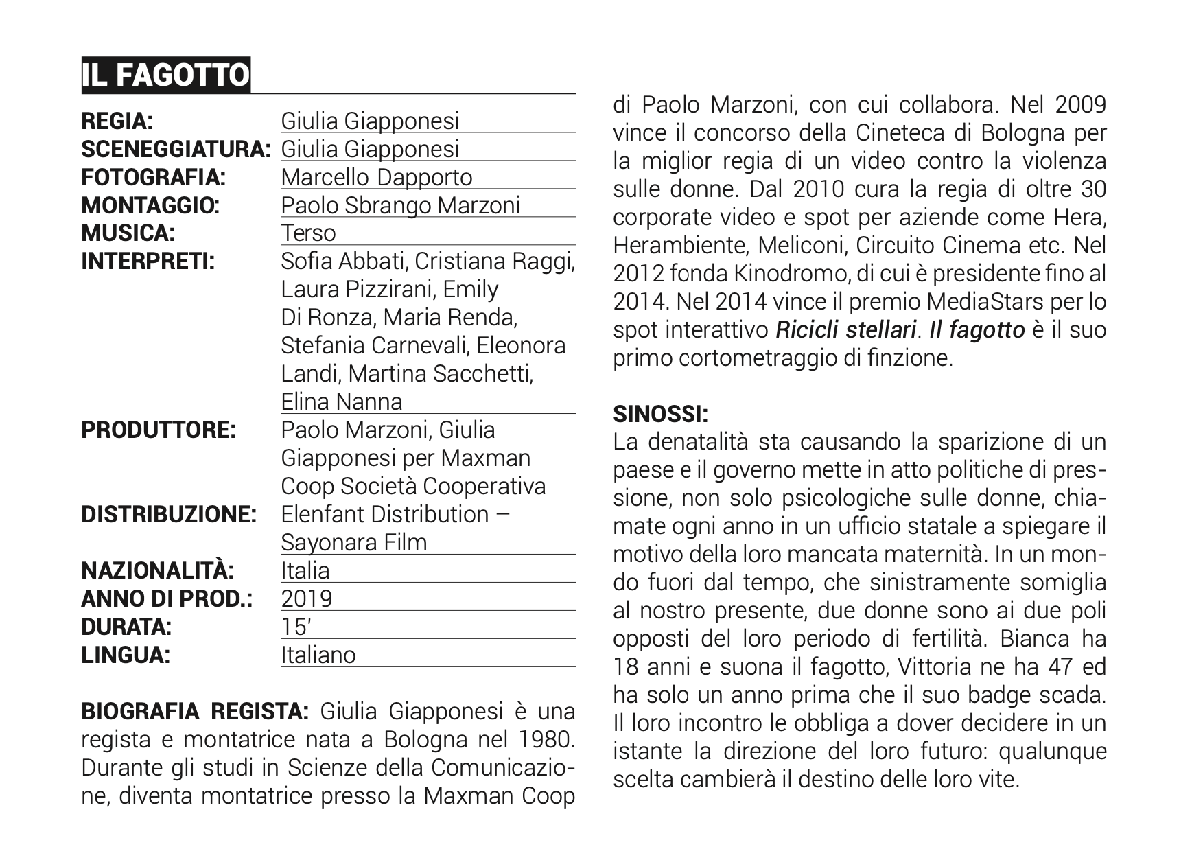 - IL FAGOTTO (Italia/2019, 15′) di Giulia Giapponesi